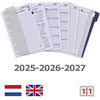 Le Pocket 6 Les inserts de l'ordre du jour de l'anneau pour l'année 2027 et 2028 ont des dimensions de 80x130 mm et une distance d'anneau de 19-19-19-19 mm.