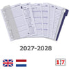 En plus des pages hebdomadaires, les inserts comprennent un planificateur annuel pour 2026, 2027, 2028 et 2029